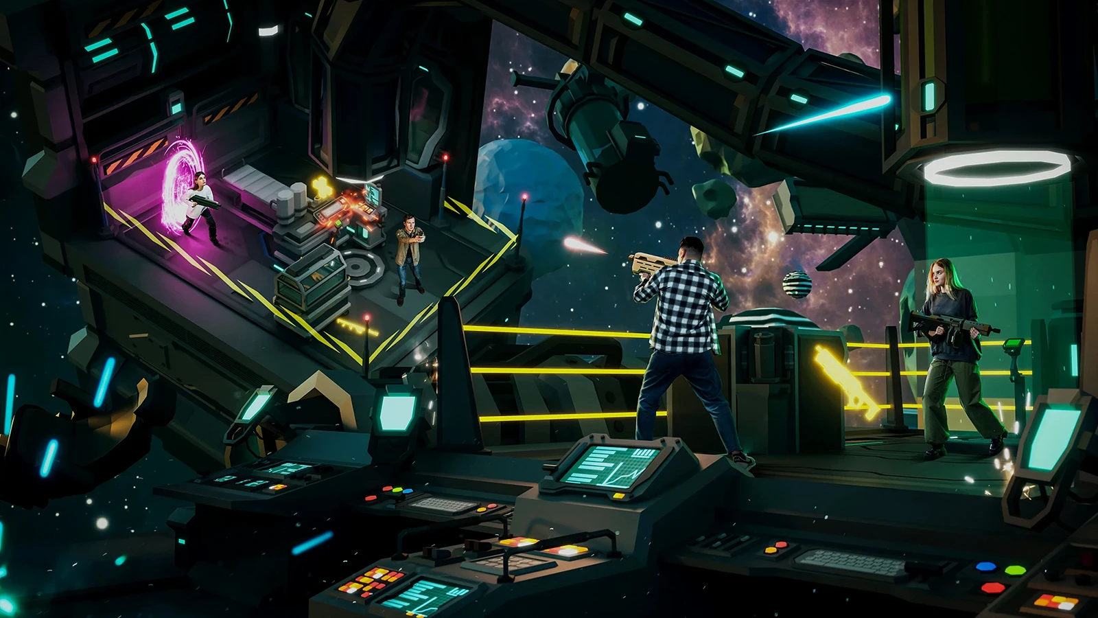Соберите своих коллег в виртуальном мире, где вас ждет яркий игровой опыт и новые впечатления! Играйте команда на команду и обменивайтесь впечатлениями. Вся арена будет для вас и ваших коллег.