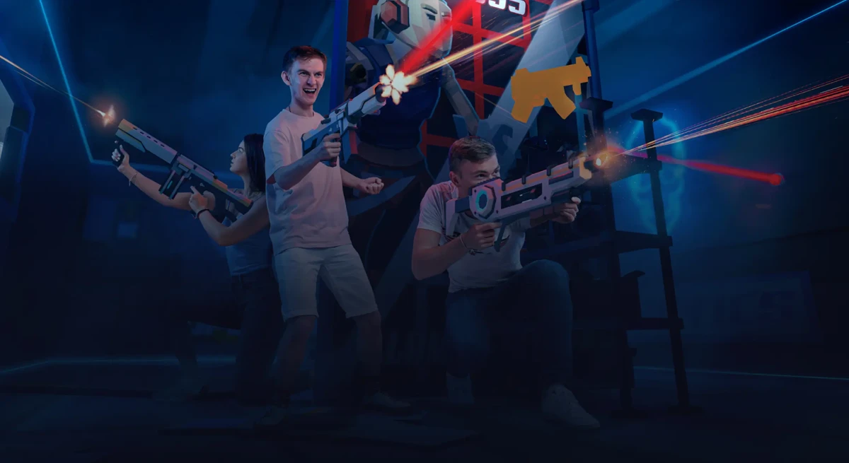 Играйте команда на команду в виртуальной реальности на арене 100 м2