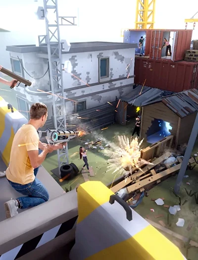 Захватывайте базу и разрушайте постройки. Перемещайтесь между площадками и используйте автобус как укрытие.Оттачивайте меткость и реакцию. Почувствуйте атмосферу веселья и станьте чемпионом в незабываемом VR-приключении!